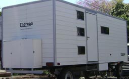 En chapa galvanizada pre pintada o fibra de vidrio, perfiles de chapa 16 en larguero, columna y techo aislado con telgopor. Piso terciado fenólico con un espesor de 15 mm. cubierto con piso vinílico. Gabinete para termotanque , garrafa y batería, puerta de acceso con escalera metálica.